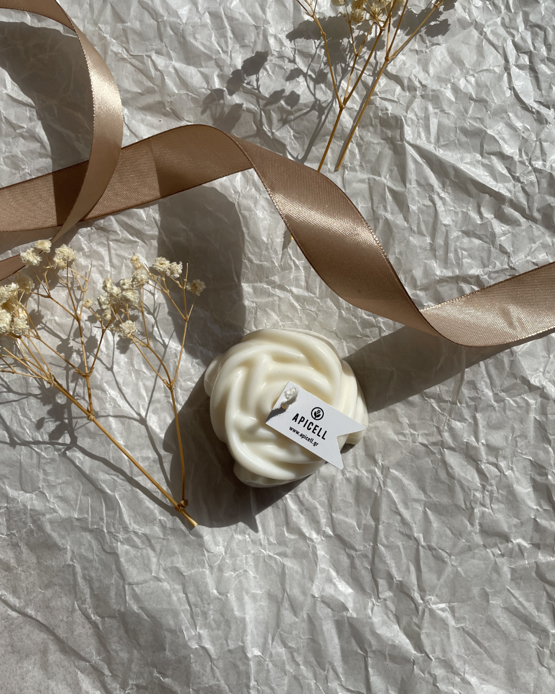 Αρωματικό κερί σόγιας σε σχήμα τριαντάφυλλο με άρωμα powder που ηρεμεί και χαλαρώνει.