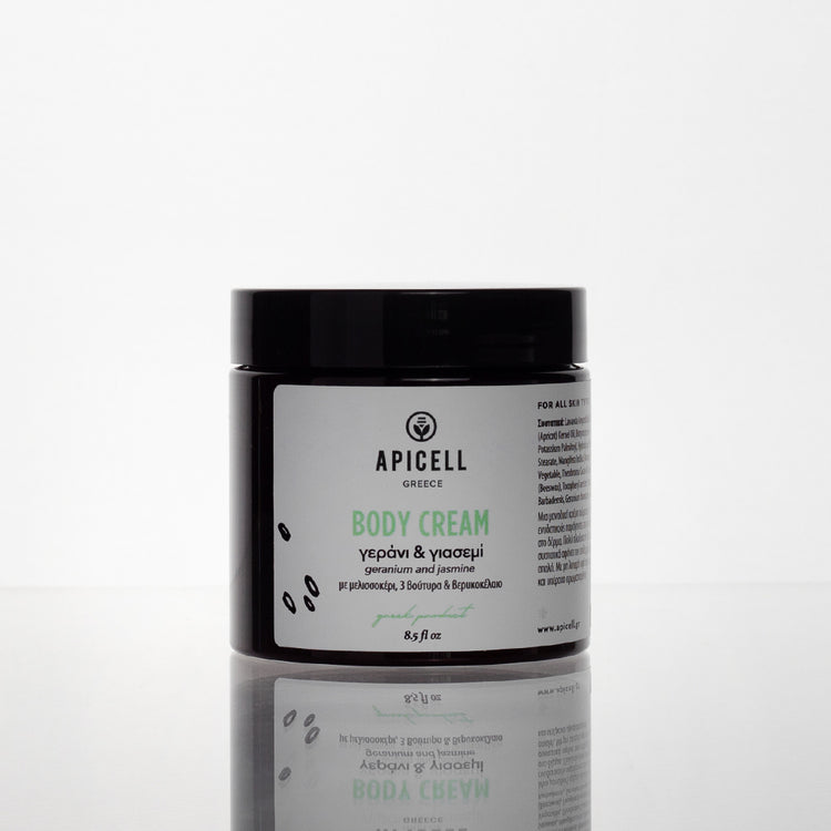 With a non-greasy texture that absorbs easily and a delightful geranium & jasmine aroma.